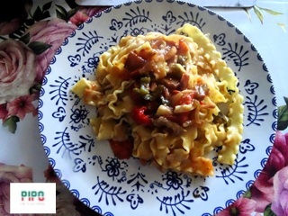 Una vez realizado añadir los pimientos y cocinar hasta que estén al dente.