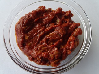 400 g de salchichas de cerdo gruesas, 100 g de beicon dulce,15 g de boletus deshidratados, ½ vaso de vino tinto, 1 vaso de leche, 175 g de tomate triturado, 1 cebolla mediana, 1 zanahoria mediana, 1 ramita de apio, aceite de oliva, pimienta y sal.