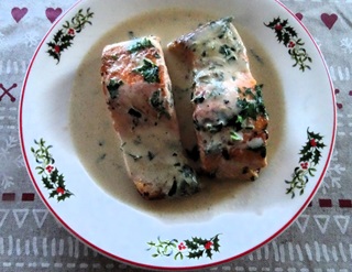 Quitar todas las espinas al salmón y reservarlo. Calentar mantequilla y sellar el salmón una vez salado por ambos lados. En la misma cazuela o sartén volver a derretir un poco de mantequilla y diluir el queso o la crema añadiendo un poco de la leche, hasta conseguir una crema media. Incorporar el salmón y espolvorear con el perejil lavado y picado, cocinar unos 5 minutos Servir caliente acompañado de su salsa.